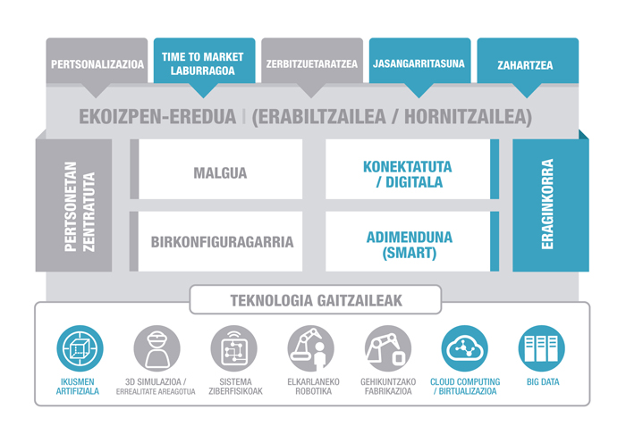 Informazio hori guztia ondo kudeatzeko, produktuaren garatze-prozesuan, ekoizpenean, banaketan eta erabileran trazabilitate osoa ahalbidetuko duten arkitektura eta informazio-sistema aurreratuak behar dira.