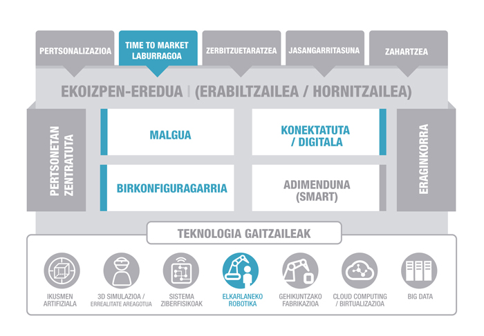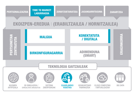 Azken batean, prozesuari malgutasuna emango dioten teknologiak behar dira, teknologia adimendunak, konektatuta daudenak eta behar aldakorretara egokitzeko gaitasuna dutenak, hala, langilea balio erantsi handiko jardueretan aritu dadin.