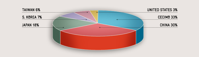 Distribución del mercado mundial de máquinas herramienta (fuente CECIMO)