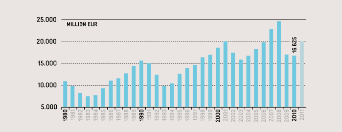 Como puede observarse en la gráfica anterior, el sector sufrió un gran desplome en los años 2009 y 2010, frente a unos excelentes años anteriores. Durante el año 2011 y el actual 2012 se aprecia una ligera mejoría.
