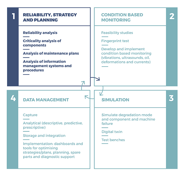 Specifically, one of the software tools compares different possible maintenance strategies (strategic planning and optimization in the use of assets) to help choose the most appropriate one and, thus, optimize costs.