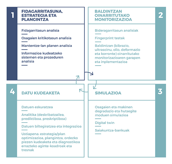 IK4-TEKNIKERen Asset Management Solutions izeneko soluzioan daude oinarrituta tresna horiek; zehazki, fidagarritasun, estrategia eta plangintzaren atalean, enpresa bakoitzaren premiak pertsonalizatzea ahalbidetzen baitu, hobekuntza-beharrak eta xede espezifikoak zehazteari begira.