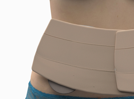 Esta solución está compuesta por una base que se apoya en el abdomen a ambos lados del estoma o incisión y un escudo o protector con forma anatómica de fácil manejo para el paciente. El diseño se encuentra actualmente en fase de obtención de patente. Además, se usa una banda de fijación para acomodar el dispositivo en la zona del estoma.
