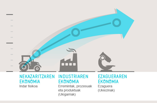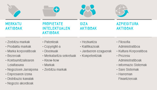 Savagek (1991) dioskunez, hauek izan dira, beti, ekonomia batean aberastasuna sortzeko faktoreak: lurra, lana, kapitala eta jakintza. Faktore horietako bakoitzaren garrantzi erlatiboa, ordea, asko aldatu da historian zehar. Hona zer dioen Druckerrek horri buruz: “Baliabide nagusia, ekoizpen-faktore guztiz erabakigarria ez da jada ez lurra, ez kapitala, ez lana: jakintza da". Horregatik, gizon-emakumeen gaitasunak, lidergoa, talde-lana, berrikuntza-gaitasuna, antolakuntza-kultura, negozio-eredua, plangintza estrategikoa, enpresaren irudia, erakundearen egitura eta laneko giroa elementu erabakigarriak dira, jakintzaren transmisio-mekanismoak merkatua menderatzeko prozesuaren zerbitzura jartzen baitituzte.